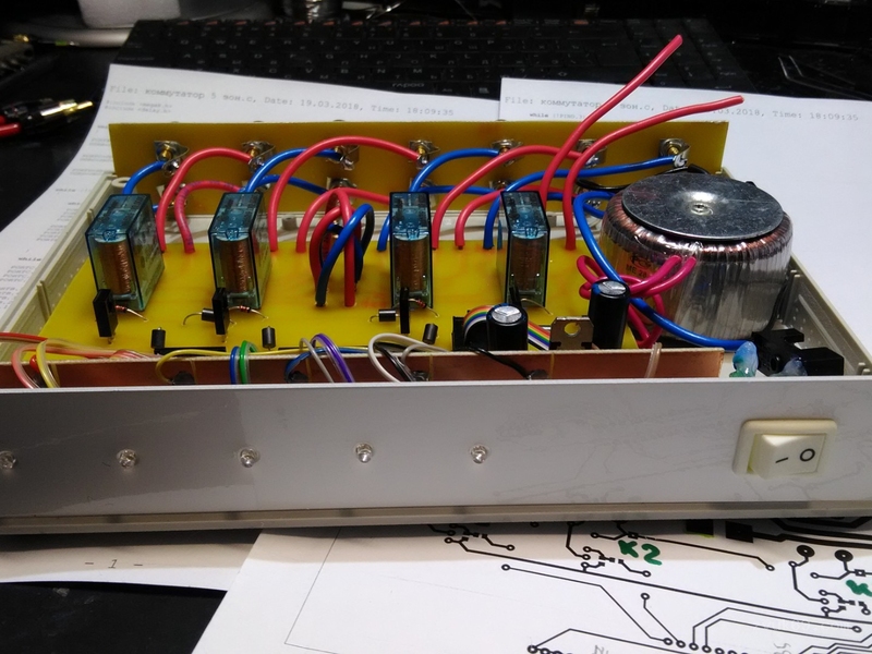 Данный коммутатор также имеет схему защиты от постоянной составляющей. В схеме используется специальные акустические реле «Finder», в которых контакты позолоченные. Ваша акустика всегда будет под защитой.